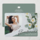 Um único cartão de anúncio personalizado de graduação de fotos, com elementos design de um script elegante de estilo manuscrito com texto moderno. A foto dos formandos é aprimorada por lindas flores brancas e amarelas em um fundo verde-na moda. O verso do cartão oferece espaços de texto personalizados para informações sobre a graduação e a viagem futura. Você pode personalizar facilmente as cores principal e de texto na parte traseira da placa para atender às suas necessidades. Para ver mais itens como este, visite minha loja aqui em "www.Zazzle.com/LakeViewCardCo". Obrigados