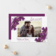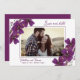 Uma maneira adorável de anunciar seu próximo casamento. Este na moda Save The Date apresenta lindas flores violetas roxas de aquarela com pontos falsos dourados de salto flanqueando sua foto favorita de casamento. A foto apresenta um filtro que pode ser alterado ou removido na ferramenta design. Adicione sua mensagem especial à família e aos amigos no verso.