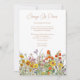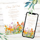 Coloridos Flores Selvagens Mudança de Planos Adiamento Cartão de Anúncio de Casamento apresenta flores bonito do país em laranja, amarelo, roxo e rosa em um fundo branco com suas informações sobre Mudança de Casamento de Planos/Adiamento. Personalize editando o texto nas caixas de texto. Projetado para você pelo Evco Studio www.zazzle.com/store/evcostudio