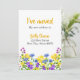 Delicado e colorido trecho de flores silvestres em aquarela. É um adorável trecho de flores silvestres amarelas, azuis, roxas e rosadas com elementos botânicos verdes vibrantes. Personalize com informações de eventos especiais.