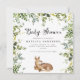Folhagem de aquarela e convite para chá de fraldas de veados. Ilustrações de aquarela e texto com letra manual. Parte de uma coleção.