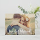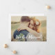 Anuncie seu casamento com este anúncio de casamento com foto de script de pincel ousado com "Nós nos Casamos!" em letras brancas com um acento de coração sobre sua foto favorita. Nomes e data do casamento são exibidos de forma destacada abaixo. O verso inclui uma segunda foto e uma carta personalizável que compartilha a história da sua cerimônia privada. Substitua ambas as fotos e edite todo o texto para criar um item precioso que seus entes queridos irão guardar.
