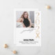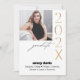 Fundo branco simples moderno com cartão de anúncio de graduação em fotografia e sotaque dourado — basta adicionar sua foto, o último dígito do ano, nome e detalhes escolares.