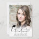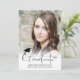 Anuncie o seu segundo grau ou formando universitário com este anúncio de design de título da tipografia de scripts simples e moderno, com duas fotos (1 na frente e 1 na parte traseira) com um boné de formatura preto ou sotaque de cartão. A parte de trás oferece um campo de texto para informações sobre as realizações, atividades e planos futuros do seu formando, se desejado. ASSISTÊNCIA: para obter ajuda com a modificação/personalização do design, transferir o design para outro produto ou, se você quiser coordenar itens, entre em contato com o designer ANTES DE ENCOMENDAR através da guia MENSAGEM de Bate-papo Zazzle ou envie um email para makeitaboutyoustore@gmail.com.