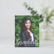 Esta elegante placa de graduação de fotos com sobreposição de tipografia branca apresenta um script branco chic sobre sua fotografia de segundo grau ou formandos. Personalize com seu nome e classe sob a adorável caligrafia e adicione uma foto de segundo no verso, juntamente com seus detalhes pessoais.