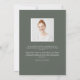 O anúncio de graduação moderno para a sua classe de formando 2022 apresenta uma foto orientada para vertical/retrato de solteiro, com "formando" na parte inferior em letra de escrita manuscrita verde de sábio escuro. O nome do formando e a escola aparecem embaixo. Adicione um anúncio pessoal às costas, juntamente com uma foto adicional.