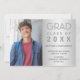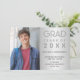 Mande a sua família e amigos este moderno anúncio personalizado de graduação de segundos graus fotográficos para rapazes ou raparigas. Este elegante design de modelo apresenta uma foto para você mudar para o seu à esquerda. À direita, num fundo falso de prata, lê-se "Formando, Classe de 20XX" com o seu nome, escola, data e planos futuros na tipografia das cinzas. A parte de trás do cartão é prata falsa. Desenhado pela artista ©Susan Coffey.