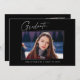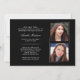 Cartões de anúncio de graduação "3 Fotografias" limpos, modernos e elegantes, com design de elementos do texto moderno com um único script de tinta de caligrafia. As fotos do formando são acentuadas com uma delicada e minimalista barreira de gradiente. A parte traseira do cartão oferece espaços de texto personalizados para informações sobre sua graduação. Preto e branco ou personalize facilmente o fundo para corresponder à cor primária da sua escola ou a qualquer cor da sua escolha. Perfeito para mais velho de segundos graus, universitários e universitários.