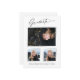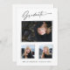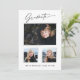 Três cartões de anúncio de fotografia, tendências, modernos e elegantes, com design de elementos do texto moderno com roteiro de tinta de caligrafia. As fotos do formando na frente da placa são realçadas com uma delicada e minimalista placa de gradiente. A parte traseira do cartão oferece espaços de texto personalizados para informações sobre a sua graduação ou pode ser apagada se você quiser enviar uma mensagem. Preto e branco ou personalize facilmente o fundo para corresponder à cor primária da sua escola ou a qualquer cor da sua escolha. Perfeito para segundos graus, universitários e formandos universitários.