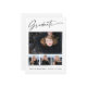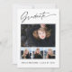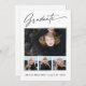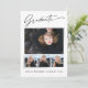 Quatro cartões de anúncio de fotografia, tendências, modernos e elegantes, com design de elementos do texto moderno com roteiro de tinta para a caligrafia. As fotos do formando na frente da placa são realçadas com uma delicada e minimalista placa de gradiente. A parte traseira do cartão oferece espaços de texto personalizados para informações sobre a sua graduação ou pode ser apagada se você quiser enviar uma mensagem. Preto e branco ou personalize facilmente o fundo para corresponder à cor primária da sua escola ou a qualquer cor da sua escolha. Perfeito para segundos graus, universitários e formandos universitários.