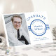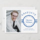 Este design moderno apresenta o texto "Formando" e o texto editável para o seu nome, classe, escola e pais orgulhosos (ou o seu texto preferido) em tipografia azul popular em fundo branco. Adicione sua própria foto à esquerda do cartão. No verso do cartão estão cinco linhas verticais. Personalize editando o texto na caixa de texto.