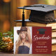 Um anúncio elegante de graduação em fotografia personalizada em magnífico marrom e ouro para um segundo grau, faculdade ou universidade da classe de 2025. Personalize com seu nome de escola e sua classe de graduação sob a adorável caligrafia para um elegante cartão com fotos vermelho burgundy com seu retrato de mais velho.