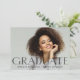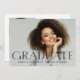 Moderno e ousado 2 Cartões de anúncio de graduação de fotos, com design elementos de texto obscuro, transparente e moderno, com tipografia minimalista. A foto do formando na frente da placa destaca a superfície inteira com uma segunda foto na parte traseira. O verso do cartão também oferece espaços de texto personalizados para informações sobre sua graduação e futura jornada. Perfeito para mais velho de segundos graus, universitários e universitários.
