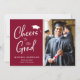 Cartão de anúncio de graduação de fotos moderno 2. Na frente, a foto do seu formando está ao lado de "Saúde ao Formando", escrita em um moderno roteiro branco com um boné de formando sobre um fundo burguês. Personalize facilmente o seu formando e escola, e adicione outra foto no verso.