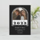 Um moderno convite de festa de formatura dupla, preto-e-branco, que foi projetado para celebrar dois formandos no estilo. Apresentando uma elegante safra fotográfica em forma de arco e "Classe de 2025 em tipografia sofisticada, este convite deve ser notado. Personalize o modelo carregando sua foto e adicionando o nome do formando e os detalhes da festa. No verso está um padrão geométrico. Todas as cores são editáveis por você! © Kimbellish, LLC
