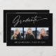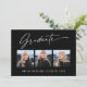 Trendy, moderna e elegante cartões de anúncio de fotos com 3, apresentando elementos design do texto moderno com roteiro de tinta de caligrafia. As fotos do formando na parte frontal da placa são acentuadas com uma delicada e minimalista placa de gradiente. A parte traseira do cartão oferece espaços de texto personalizados para informações sobre a sua graduação ou pode ser apagada se você quiser enviar uma mensagem. Preto e branco ou personalize facilmente o fundo para corresponder à cor primária da sua escola ou a qualquer cor da sua escolha. Perfeito para o segundo grau, universitário e estudante de formando universitário.