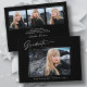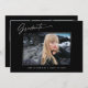 Cartões modernos, elegantes e modernos, com design de elementos do texto moderno com escrita de tinta de caligrafia. As fotos do formando, na frente e no verso, são acentuadas com uma delicada e minimalista barreira de gradiente. A parte traseira do cartão oferece espaços de texto personalizados para informações sobre sua graduação. Preto e branco ou personalize facilmente o fundo para corresponder à cor primária da sua escola ou a qualquer cor da sua escolha. Perfeito para o segundo grau, universitário e estudante de formando universitário.