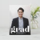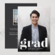 Anúncio simples e moderno de graduação de fotos com um toque minimalista apresenta "formando" na parte inferior, com seu formando e escola embaixo, e seu ano de formatura trabalhou na design. Ideal para segundo grau, faculdade ou graduação avançada. Adicione uma mensagem pessoal ao verso, juntamente com uma foto adicional.