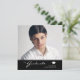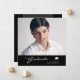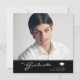 Cartão de anúncio de formatura quadrada incrível, com elementos design do texto moderno fundidos com um roteiro elegante de caligrafia. A foto dos formandos destaca a frente do cartão, enquanto a parte traseira do cartão oferece espaços de texto personalizados para informações sobre a formatura e a viagem futura. Os fundos são pretos com um fino gradiente na frente e tons regais de cinza e pretos no verso. Para ver mais itens como este, visite minha loja aqui em "www.Zazzle.com/LakeViewCardCo". Obrigados
