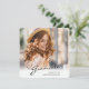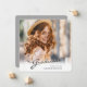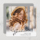 Um único cartão de anúncio de graduação quadrada personalizado, com elementos design do texto moderno fundidos com um roteiro elegante de caligrafia. A foto dos formandos destaca a frente do cartão, enquanto a parte traseira do cartão oferece espaços de texto personalizados para informações sobre a formatura e a viagem futura. Os fundos são gradiente branco moderno na frente e cinza prateada na parte traseira ou personalizam facilmente a parte traseira da placa para uma cor de sua preferência. Para ver mais itens como este, visite minha loja aqui em "www.Zazzle.com/LakeViewCardCo". Obrigados