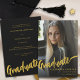 Comemore a faculdade, universidade ou segundo grau da sua filha com este incrível cartão de anúncio minimalista de na moda e de fotografia de formando preto. Apresentando elegante caligrafia em dourado e modelo de foto de formando, este design capta o entusiasmo de novos começos e comemorações alegres. Personalize-o com uma foto apreciada do seu formando usando o modelo de foto fácil de usar e realce os detalhes do evento na impressionante tipografia. Desenhado pela artista Catherine Sweetman, este convite único combina elegantemente elegância com a emoção da conquista da sua filha, fazer a maneira ideal de juntar entes queridos e marcar este marco especial.