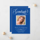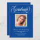 Anuncie seu formandos à sua família e amigos em estilo com este elegante cartão de anúncio personalizado de fotos. Este design moderno apresenta um elegante roteiro de caligrafia branca que lê "Classe de Formando de 20XX" com seu nome, faculdade, grau e data para personalizar sobre um fundo azul real. Parabéns na sua formatura! Desenhada por Susan Coffey.