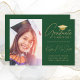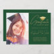 Envie a sua família e amigos um cartão de formandos personalizado único para os fazer. Este design modelo apresenta sua foto personalizada à esquerda e à direita um boné de formando dourado falso sentado na palavra "Formando" escrita em uma tipografia falsa dourada escrita à mão. Personalize sua classe/ano, nome, grau e outros detalhes da cerimônia em um fundo clássico de marrom vermelho. Desenhada por Susan Coffey.