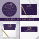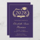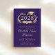 Anúncio clássico de formandos roxo com "Classe de" numa ilustração de uma coroa de louros que incorpora um boné de formando de ouro e um diploma e o nome do formando numa escrita elegante em ouro. Adicione sua escola, major, honras ou planos futuros.