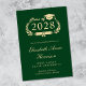 Anúncio elegante do formandos verde apresentando "Classe de" em uma ilustração clara dourada de uma coroa de louros com um boné superior e diploma de formando e o nome do formando em um roteiro dourado claro. Adicione sua escola, major, honras ou planos futuros.