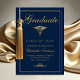 Envie a sua família e amigos um anúncio elegante de graduação com um fundo azul marinho com caligrafia em ouro fuax e boné de formando dourado, bordado por uma fina estrutura em ouro. Personalize com seus detalhes de graduação. Desenhada por Susan Coffey.
