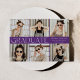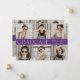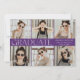 Anúncio de graduação minimalista com 6 fotos quadradas na frente com "Formando" exibido em letras brancas modernas em fundo roxo. Personalize a frente do anúncio de formatura multifoto, adicionando o nome do formando, a escola e o ano de formatura. O anúncio é revertido para exibir 6 fotos adicionais com espaço para texto, como planos futuros, detalhes de festa de formatura, etc. O anúncio da graduação de 12 fotos é perfeito para formandos de segundo grau e de faculdade.
