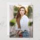 Este anúncio de formatura elegante apresenta duas fotos do seu formando - uma na frente e outra na parte de trás. A palavra Formando em um roteiro branco moderno sobrepõe-se ao fundo junto com seu nome e ano de classe. Mudar a redação no verso de um anúncio de graduação ou de um convite de festa de formatura. Você também pode mudar a cor no verso para corresponder à sua foto ou cor escolar.