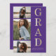 Compartilhe a alegria de um segundo grau ou formandos com este convite personalizado de 3 colagens de fotos, roxo e lançamento de graduação em ouro.
