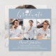 Este elegante cartão de anúncio de graduação em chic pode ser personalizado em letras modernas em um fundo azul empoeirado com suas 4 fotos de formando especial. Projetado por Thisnotme©