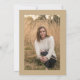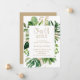 Anúncio de graduação de moças botânicas modernas com "Classe de Ano" em uma elegante letra manuscrita juntamente com o dentro de detalhes da escola de formando de um quadro geométrico cercado por verde tropical pintado com aquarela e folhas de ouro falsas. A parte de trás tem sua foto favorita com uma borda dourada.