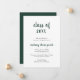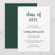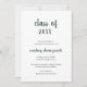 Cartão de anúncio de graduação minimalista com um design simples e clássico com "classe de ano" e o nome do formando em um roteiro verde de floresta grosso, sobre um fundo branco. A parte de trás é verde florestal sólido. Um cartão de anúncio tradicional com um talento moderno para um formando feminino.