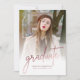 Um cartão de foto de formatura moderno e trendy para compartilhar a alegria de uma formatura do ensino médio ou faculdade com familiares e amigos. Substitua as fotos na frente, no verso e a redação clicando no botão "Personalizar".