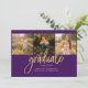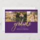 Formatura 4 Fotos Script Roxo Dourado Anúncio para a turma de 2025. Personalize facilmente alterando o texto e substituindo as fotos pelas suas. Uma maneira moderna e mais atual de anunciar sua formatura este ano!