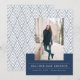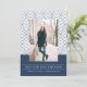 Anúncio de Formatura da Marinha Moderna. Este anúncio de formatura elegante apresenta uma foto vertical para personalizar com um padrão geométrico azul marinho e branco.