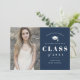 Um simples anúncio de formatura com foto apresentando grande ano de formatura, tipo clássico e nome do aluno.