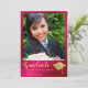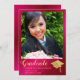 Crie um convite de formatura personalizado elegante com rosa quente e dourado com a foto do seu graduado para a turma de 2025. Este design é decorado com ilustrações de um chapéu de graduado e diploma em cores amarelo dourado. O modelo facilita a personalização do anúncio de formatura com nome, ano, nome da escola, foto e outros textos.