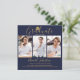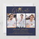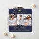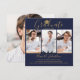 Este elegante e sofisticado cartão de anúncio de formatura pode ser personalizado com letras douradas em um fundo azul marinho com as 4 fotos especiais do formando. Criado por Thisisnotme©
