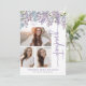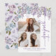 Convite de Formatura com Floral Roxo. Anuncie sua formatura do ensino médio ou faculdade com estilo com este cartão rústico moderno, lindamente elaborado, apresentando três espaços para fotos na frente, rodeados por lilases elegantes em água, tons suaves de roxo, rosas lavanda e flores silvestres azuis com folhagem exuberante, e um padrão coordenado no verso. Celebre seu marco na primavera ou verão personalizando o texto, estilos de fonte, cores e tamanhos para criar um souvenir com apelo atemporal.