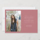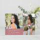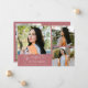 Cartão de foto de anúncio de formatura moderno e elegante com 3 fotos na frente e 1 no verso. O texto diz "grata pelo seu apoio" em fonte manuscrita. Adicione o nome do graduado, informações e mensagem para personalizar este cartão. Rosa.