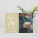 Escrito branco moderno, Salva o Cartão com fotos de Data do Casamento. Recursos, fundo amarelo poeirento e fundo amarelo poeirento e modelo de foto de solteiro na frente.