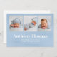 Apresente o seu bebê com este anúncio de bebê azul, com um elegante modelo fotográfico para realçar a sua chegada. Mostra estatísticas de nascimento de recém-nascidos em uma bela design de roupa branca adornada com macacões denim para um toque encantador. Com seu layout minimalista simples, a tipografia do na moda e uma fotografia mínima adorável, este anúncio expele um design clássico mínimo, mantendo um talento criativo e único — perfeito para celebrar seu pacote de preciosos de alegria.