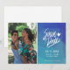 Faça seus convidados animados para o seu grande dia com nosso casamento de fotos modernas e azuis, salve a data. Este cartão apresenta uma bela foto de você e seu parceiro, juntamente com todos os detalhes importantes que seus convidados precisam saber.