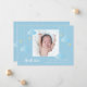 Foto Twinkle, foto do bebê bebezinho, cartão de anúncio para apresentar seu lindo filho recém-nascido. A frente inclui uma foto de bebê cercada por estrelas cintilantes e nuvens de azul-bebê macio. Personalize com o nome do seu bebê e as estatísticas de natalidade em texto branco elegante. O reverso apresenta novas estrelas cintilantes e nuvens de azul-bebê macio. Projetado por Thisnotme©