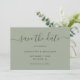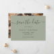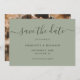 Crie uma bela foto de casamento salve o cartão de data com uma letra elegante. Personalize facilmente este casamento de fotos verdes sábias salve o cartão de data com sua imagem e detalhes do casamento.