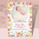 Este belo anúncio de bebê apresenta uma borda de bonito rosas rosa, corais e amarelas pintadas em aquarela ao redor de uma foto circular do seu doce bebê e a frase personalizável, "nosso pequeno amor". Personalize o seu cartão com as suas estatísticas de natalidade e assine o mais elegante, um cartão de anúncio gentil! Mande a todos a notícia que não podem esperar para apresentar o mais novo membro da sua família com esta design brilhante e brilhante.